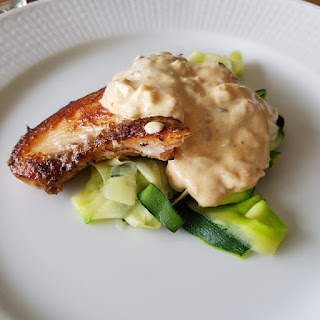 Ni som undrar nu vad vi åt till middag som Anders fixade var stekt lax med zucchinipasta och en ostsås. Den var lite stark men är man som jag lite känslig mot för starkt så kan man minska ner på sambal oelek. Anders tog en rågad sked….. hot hot….