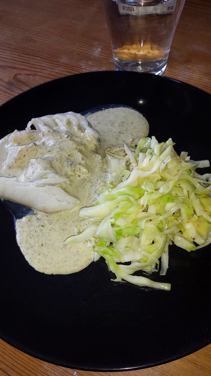 Kokt torsk med spenatsås och smörstekt vitkål
