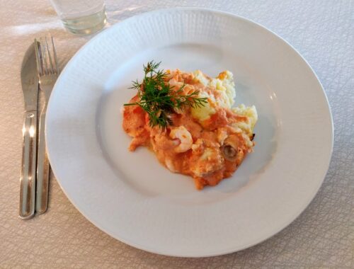 Fiskgratäng med blomkålsmos