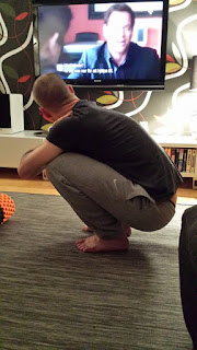 Att sitta på huk är en av våra ursprungspositioner, du har väl sätt hur våra barn sitter när de leker? På huk! Vincent har inga problem alls att sitta på huk. Han tycker nästan det ser roligt ut när jag försöker.